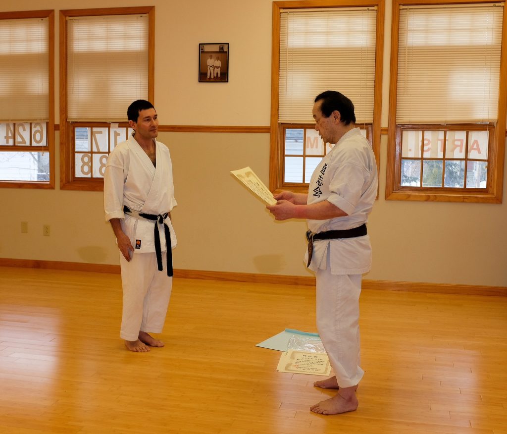At the end of class, Sensei Matsuyama presented shodan and nidan certificates to the four people who promoted to shodan and nidan in August: Melynda Gambino (Shodan), Poul Williams (Shodan), Andrea Tondo (Nidan), and John O’Gara (Nidan). Melynda and Poul also received their black belts from Sensei.